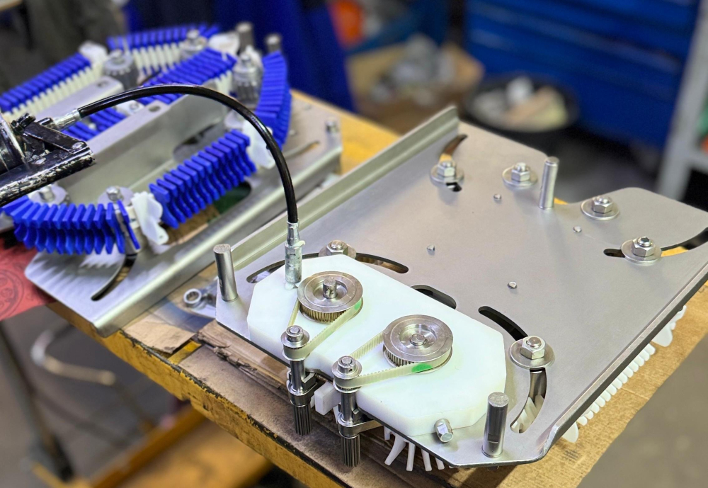 Zum automatischen Aufhängen von Würstchen an Haken